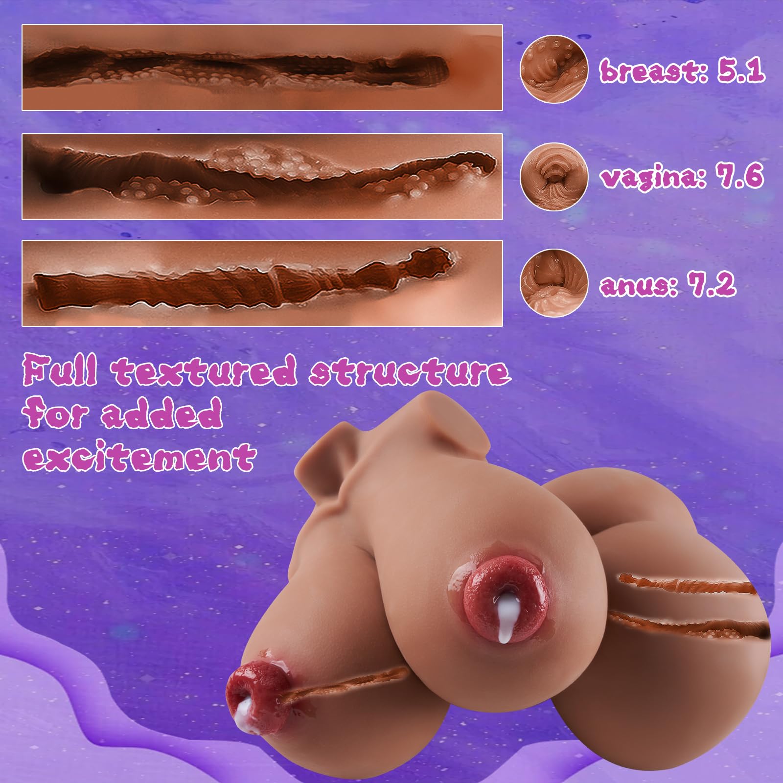 Zonbik 24lb Adult Sex Doll Male Masturbator, 4 in 1 Female Torso Love Doll with Big Boobs, Big Ass, 3D Realistic Torso Sex Dolls Masturbation Penetrable Nipples Sex Toys for Men TPE Material Brown